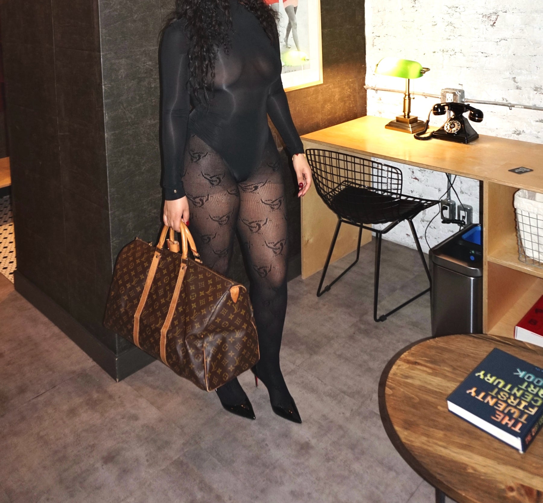 Black turtleneck Long sleeve bodysuit in sheer stretch material. Model wearing size Medium (True to size)