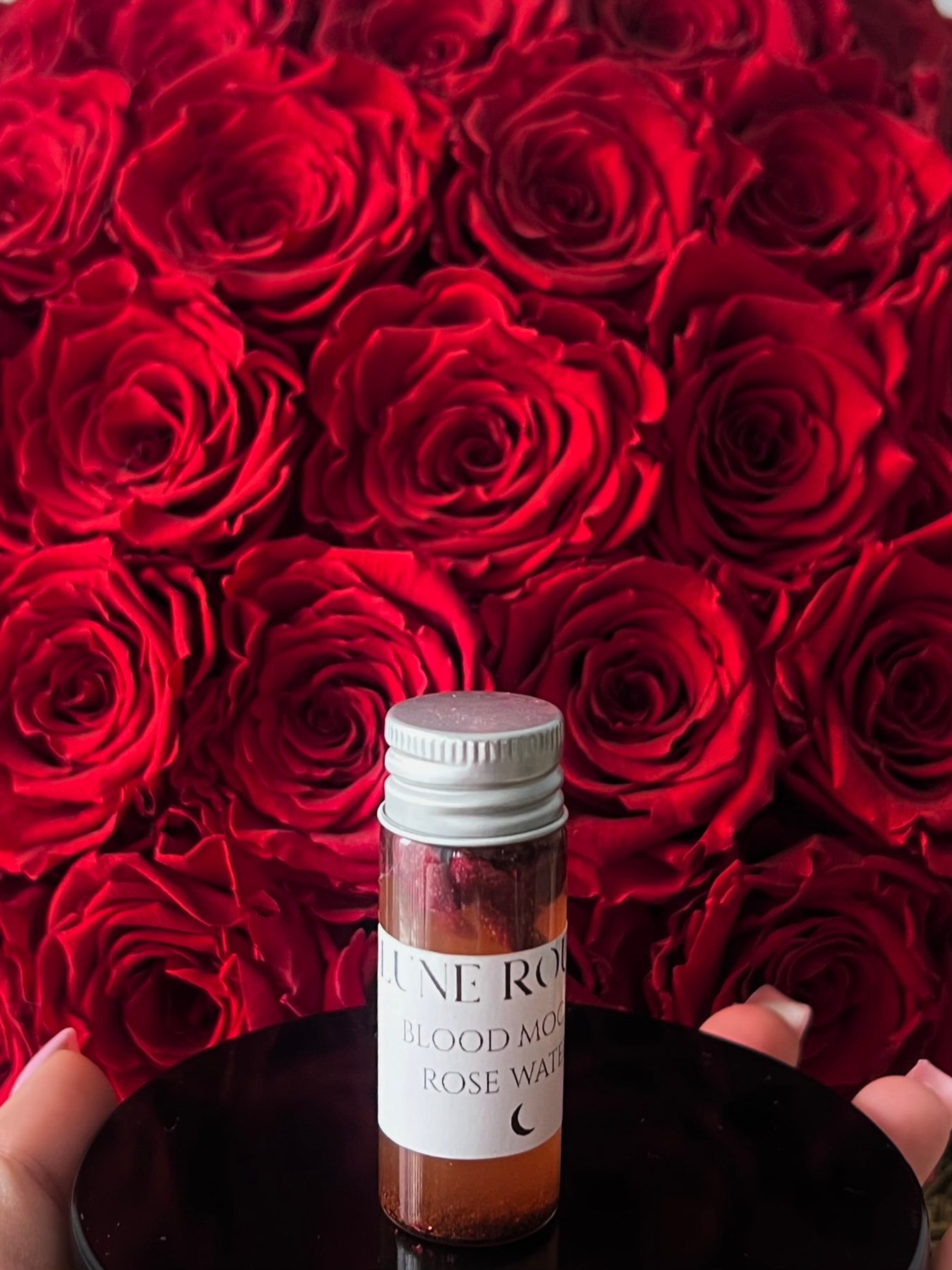 Moon Rose Water Vial – Charged Under Full Blood Moon (09/07/25) Our Blood Moon Rose Water has been purified and blessed under the Blood Moon with love and positive intention's.